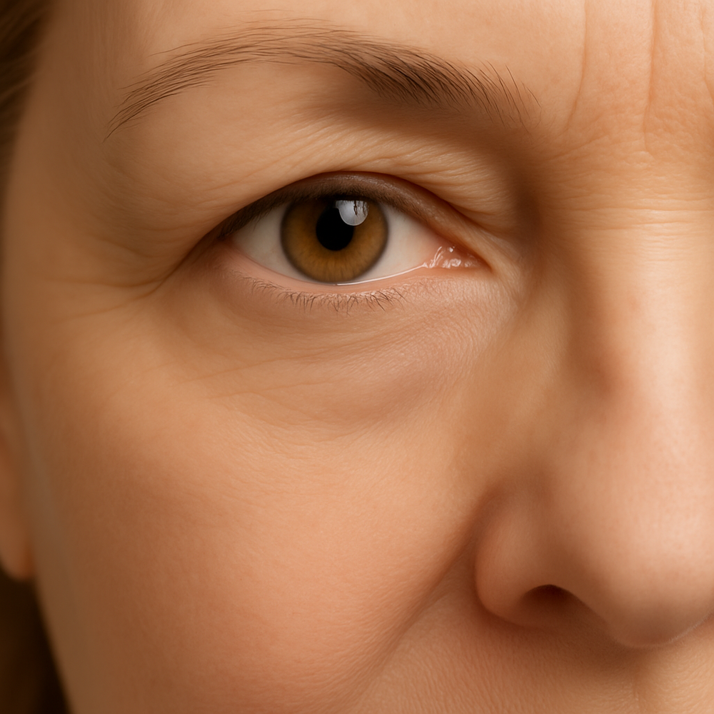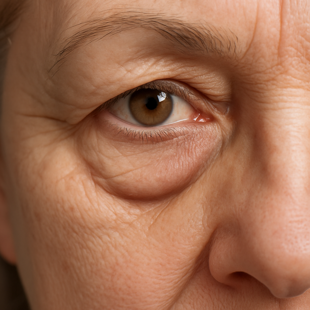 Swipe to compare — our advanced firming cream visibly tightens the appearance of under-eye bags and puffiness without residue.